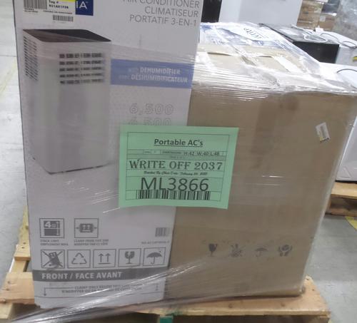 Load of portable AC's in various physical condition, including scratches and dents. Original packaging and accessories can be missing.