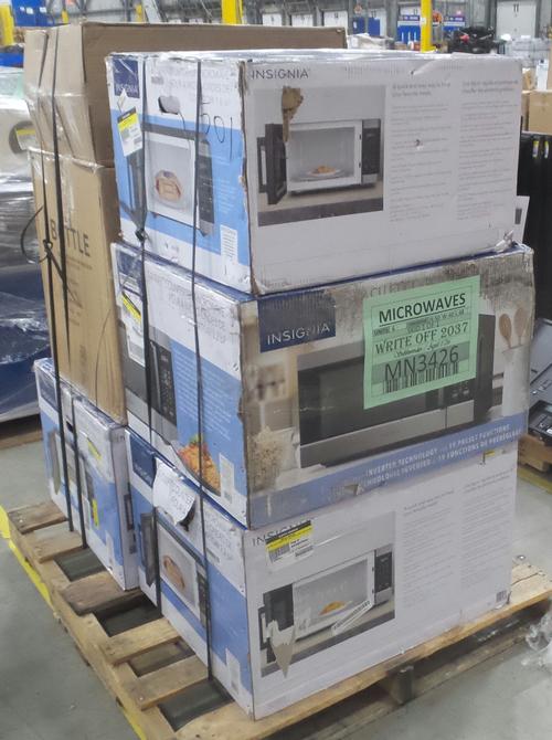 Load of assorted microwaves in various physical condition, including scratches and dents. Original packaging and accessories can be missing. Please note that the weight quoted is the cubic weight.